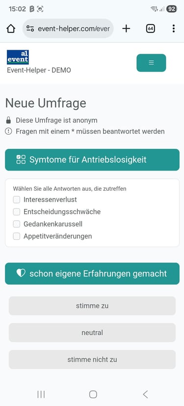 Der Event-Helper wurde von Praktikern der Veranstaltungsbranche eigens entwickelt, um Veranstaltungen aller Art genau mit den Anwendungen zu unterstützen, die sich immer wiederholen, ohne dabei auf individuelle Konfigurationsmöglichkeiten für die unterschiedlichsten Eventinhalte zu verzichten und dabei einen möglichst hohen Mehrwert sowohl für die Organisatoren als auch für die Gäste zu bieten. Grundsätzlich können alle Bestandteile einer Veranstaltung (Agenda, Workshops, Raumaufteilung, Umfragen etc.) „on the fly“ auf dem mobilen Endgerät der Teilnehmer angezeigt werden. So werden auch kurzfristige Anpassungen während der Veranstaltung z.B. am zeitlichen Ablauf schnell und unkompliziert an alle Teilnehmer kommuniziert. (Achtung: dies ist keine eigenständige Applikation auf dem Handy sondern eine SaaS-Anwendung - Handys müssen eine Online-Verbindung haben).